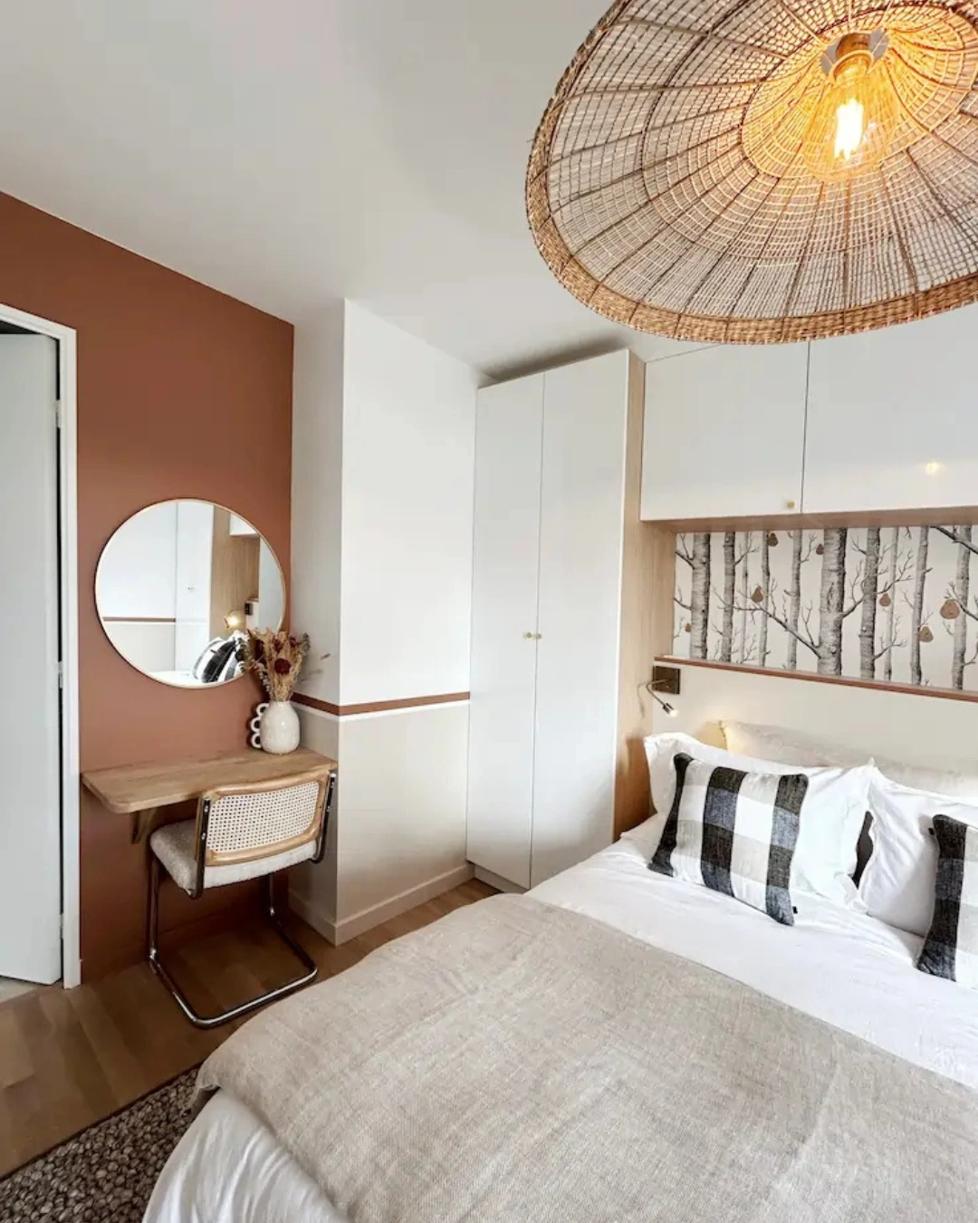 Dans la chambre principale, une palette terracotta et beige, chaude et consensuelle, capable de plaire au plus grand nombre.